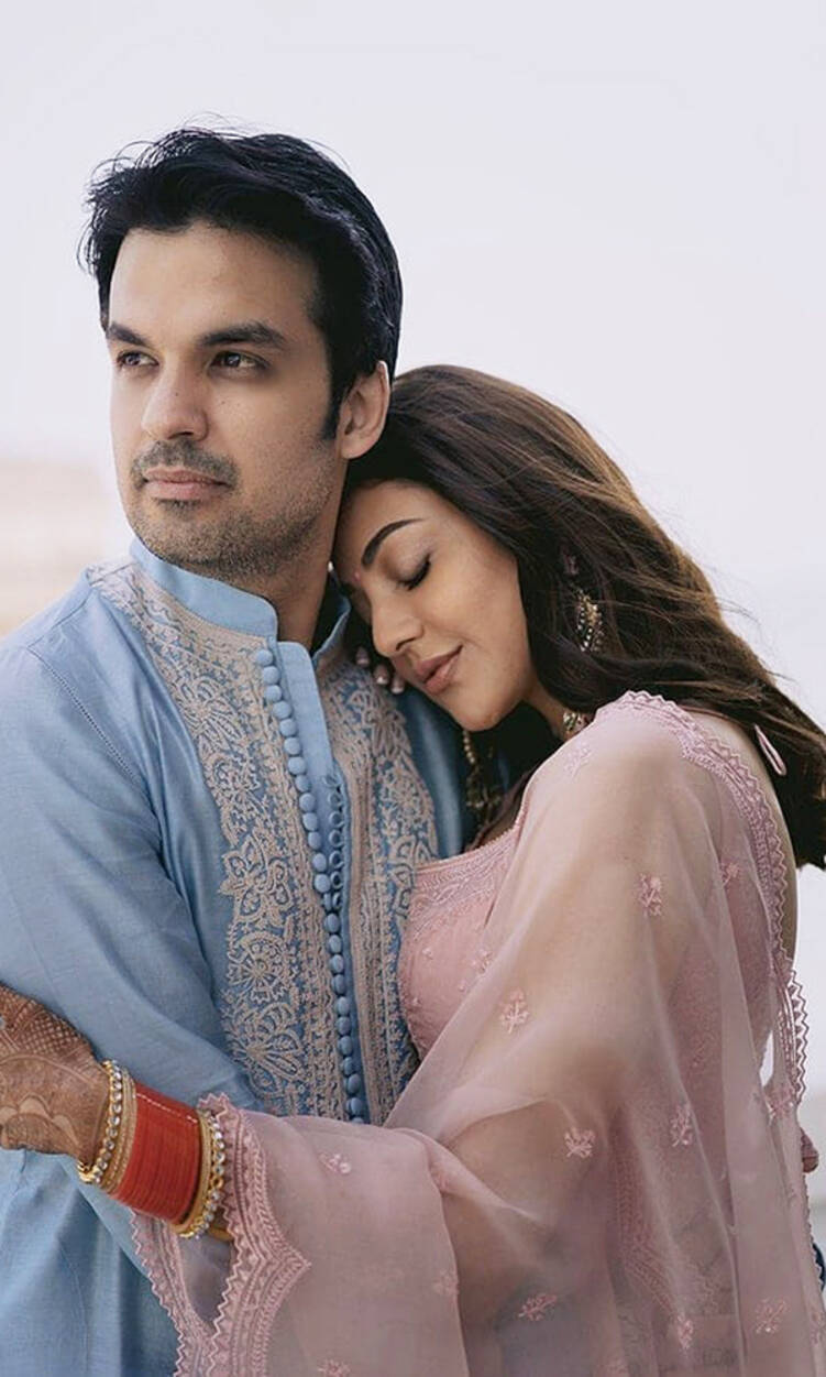Romantic picture of Kajal Aggarwal and hubby Gautam Kitchlu from their 'Griha Pravesh' puja | Photogallery - ETimes